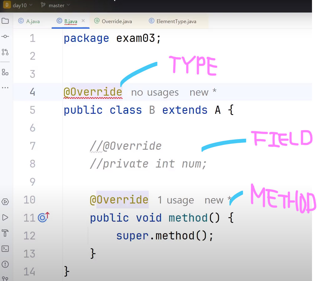 ㄴ import static java.lang.annotation.ElementType.*; : import하면 매번 ElementType안붙이고 상수명만으로도 ㅇㅋ