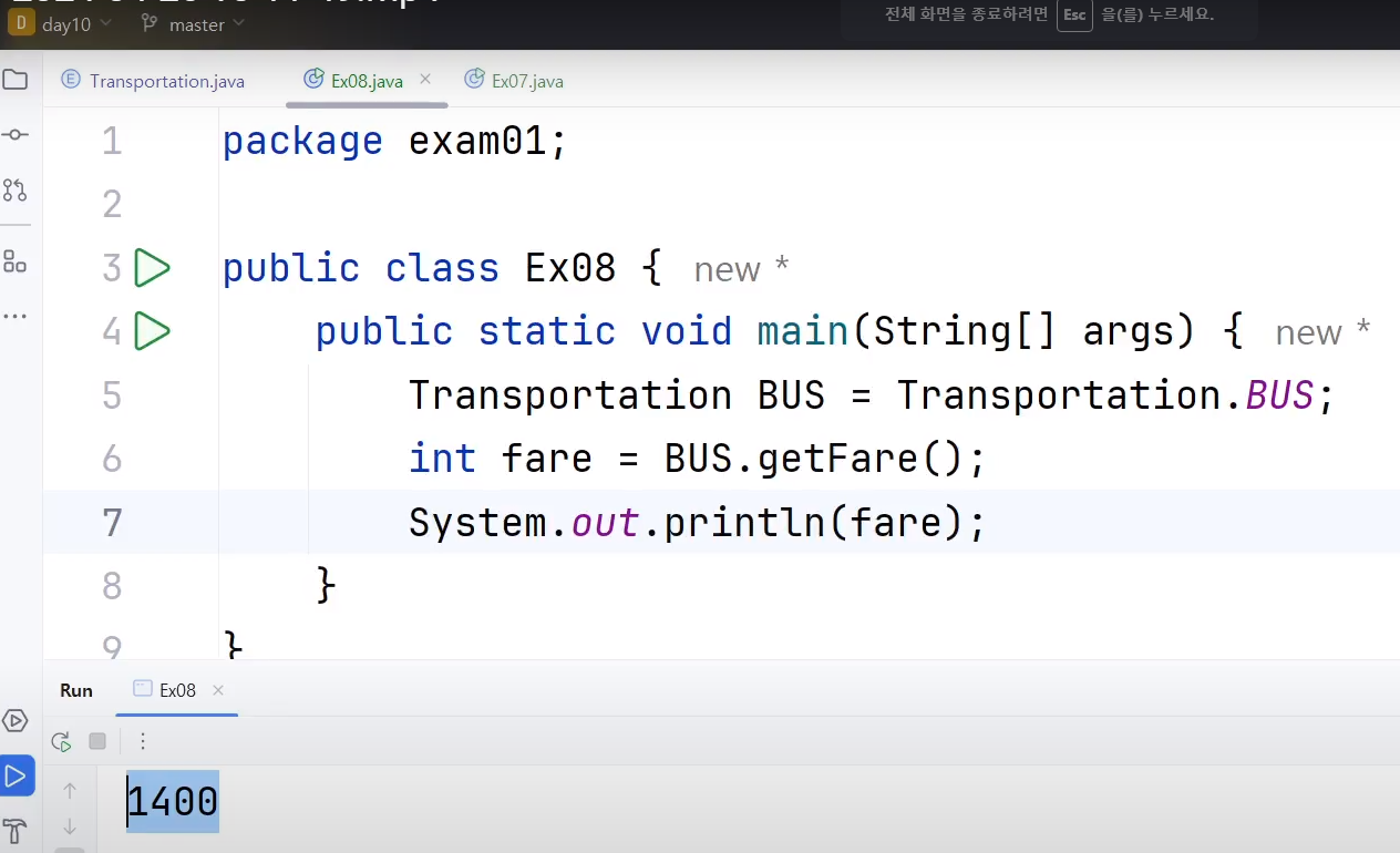 BUS(1400), // 생성자를 가리킴 -> Transportation() {}
