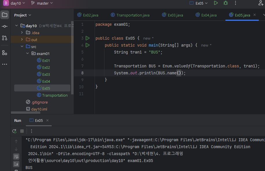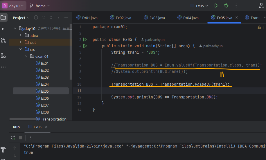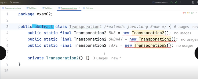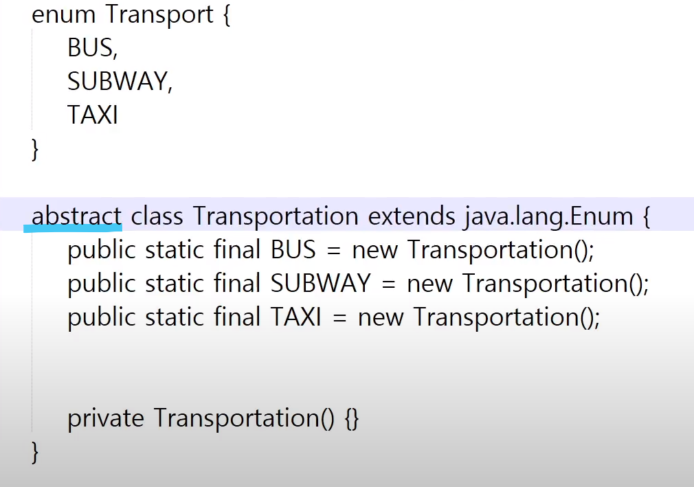-> enum클래스가 추상클래스라는걸 보여주기 위해 하드코딩한거