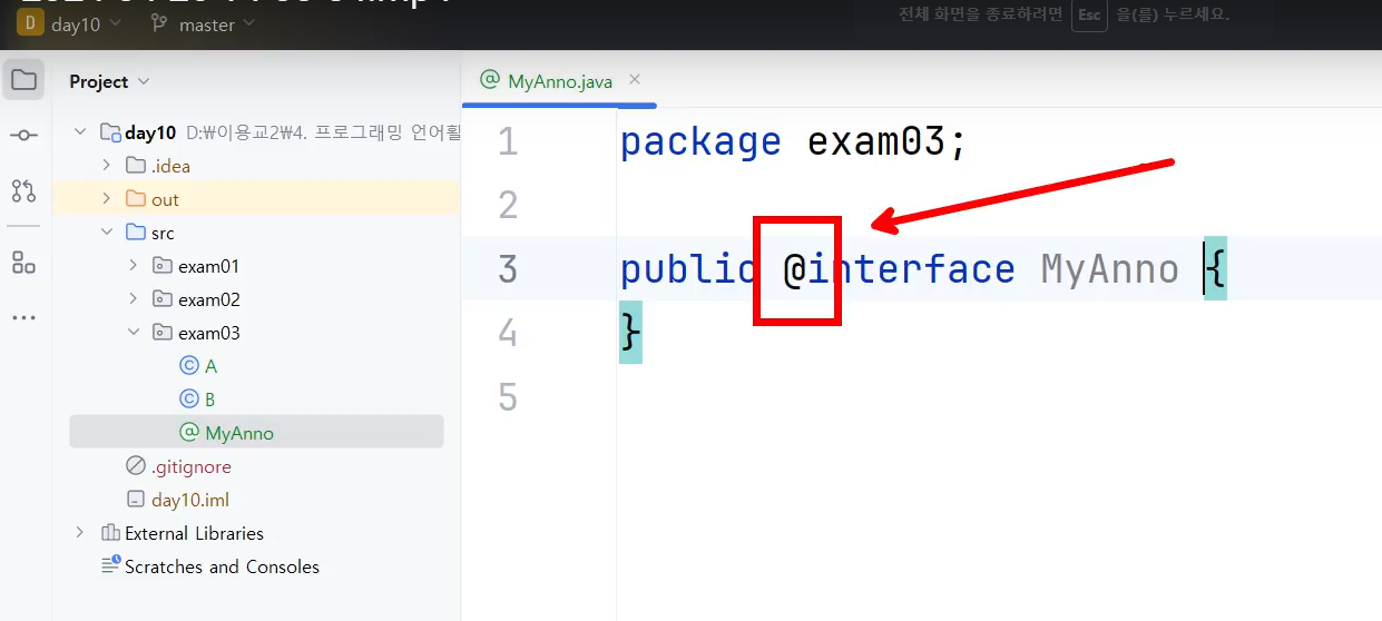 interface 애노테이션명 extends java.lang.annotation.Annotation {