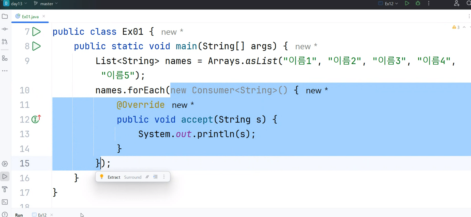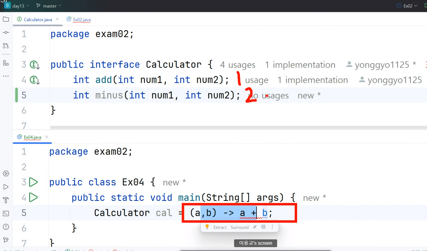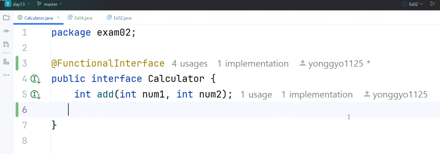 ㄴ @FunctionalInterface 이 있는 인터페이스가 보이면 -> 함수형 크로그래밍 즉 람다식을 써야하는 인터페이스다