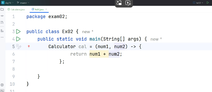 4) 구현코드가 한줄일때는 { ... } 생략 가능, return 예약어도 생략 해야 된다.