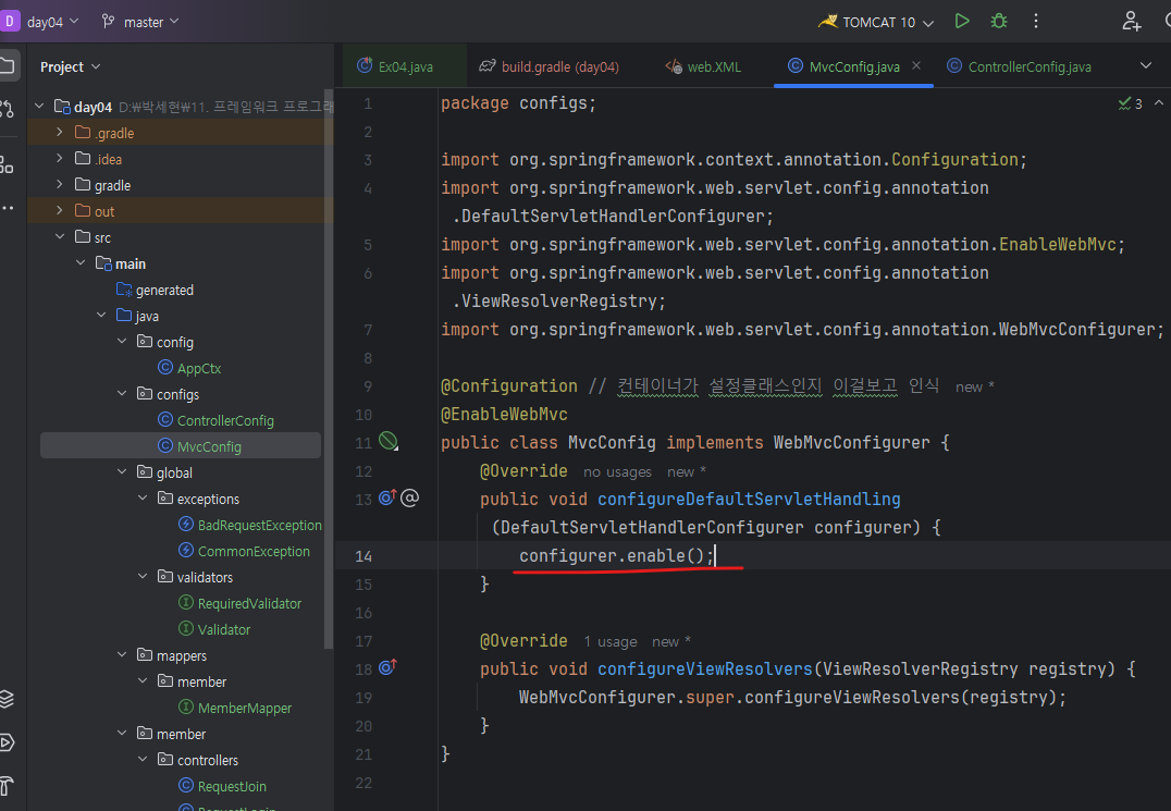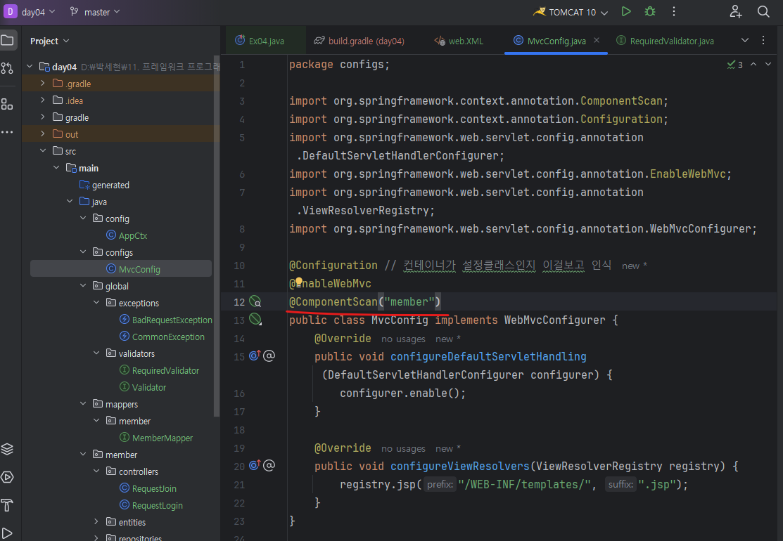 ㄴ implements WebMvcConfigurer : Mvc관련된 설정이 모두 WebMvcConfigurer에 담겨있음