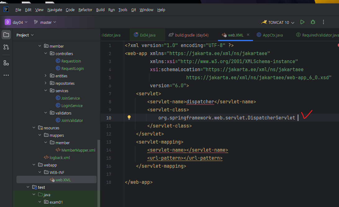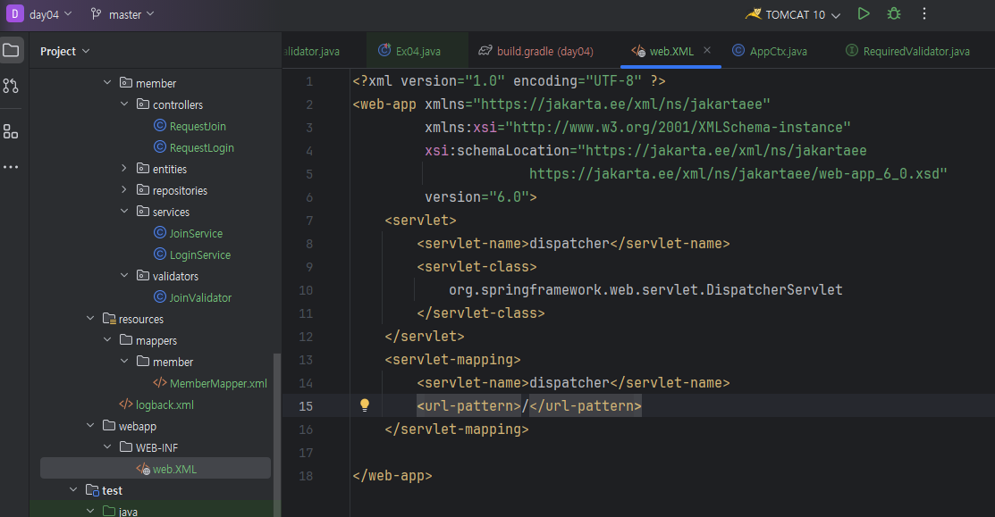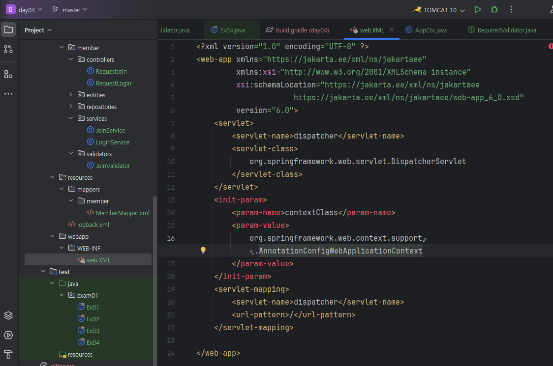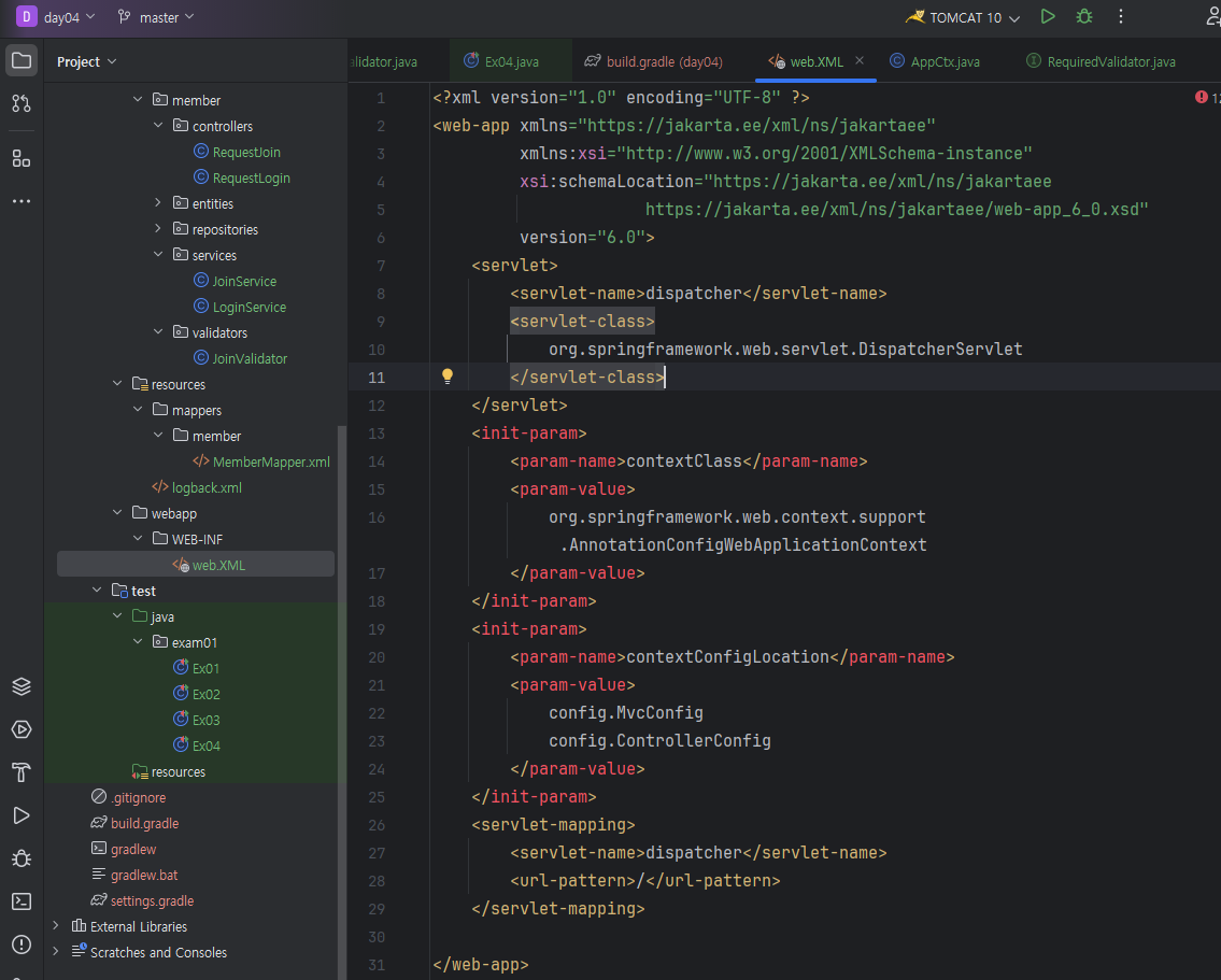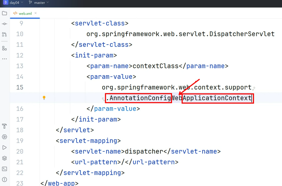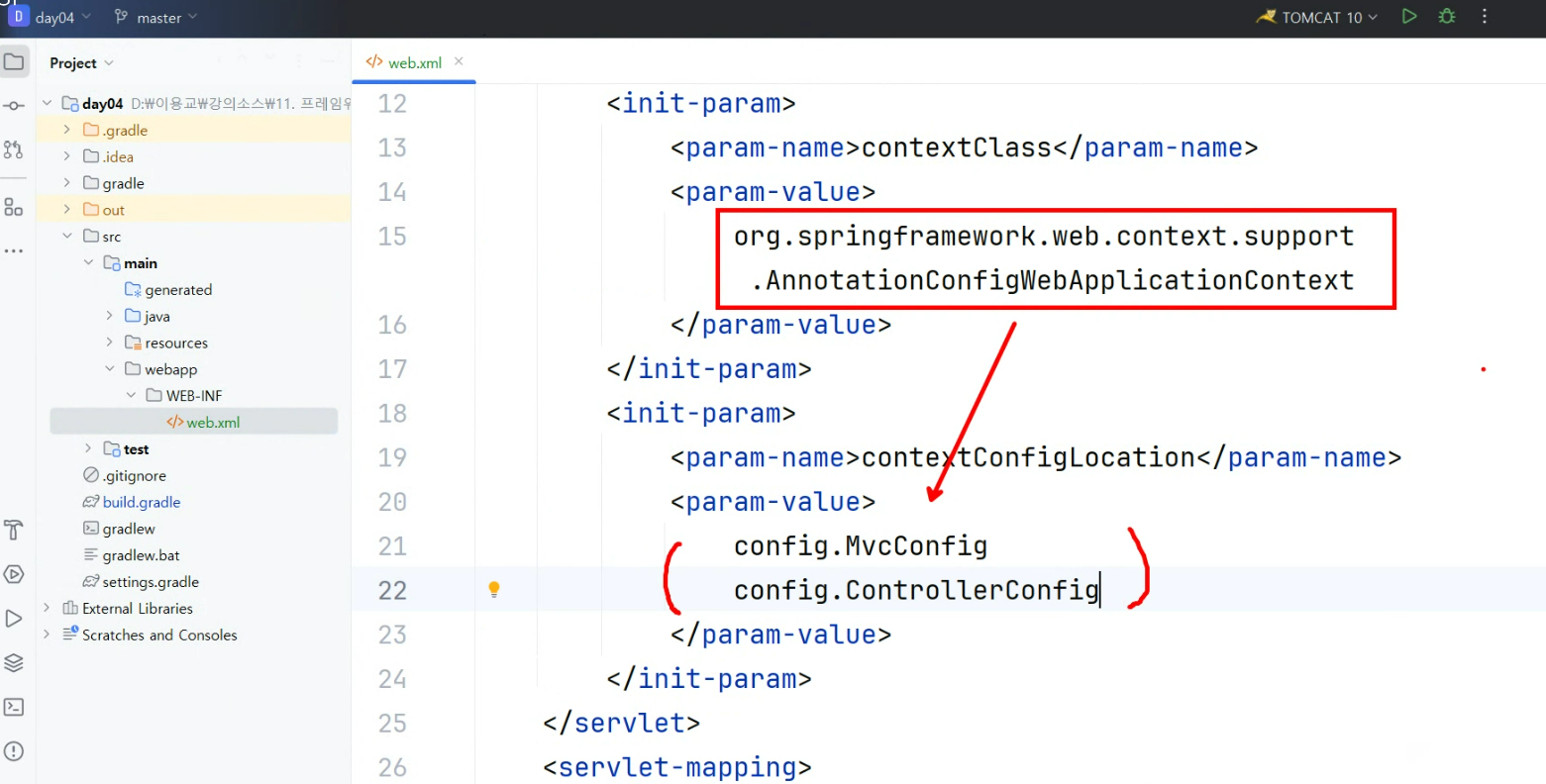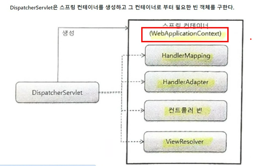 ㄴ 직접 서블릿 클래스를 new하고 생성을 못하기 때문에 스프링컨테이너를 뭐로 할건지 알려주면 이 클래스를 가지고 초기화를 한다...?