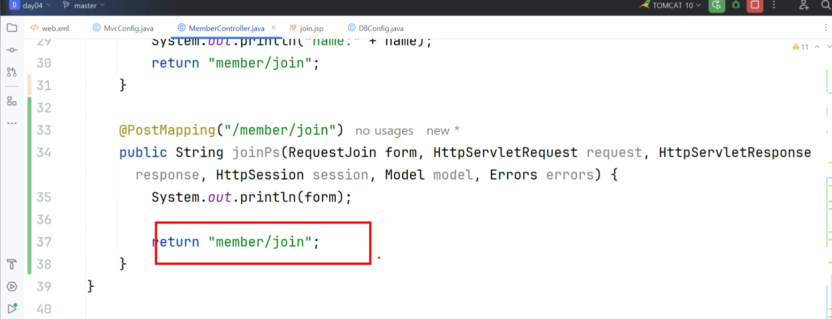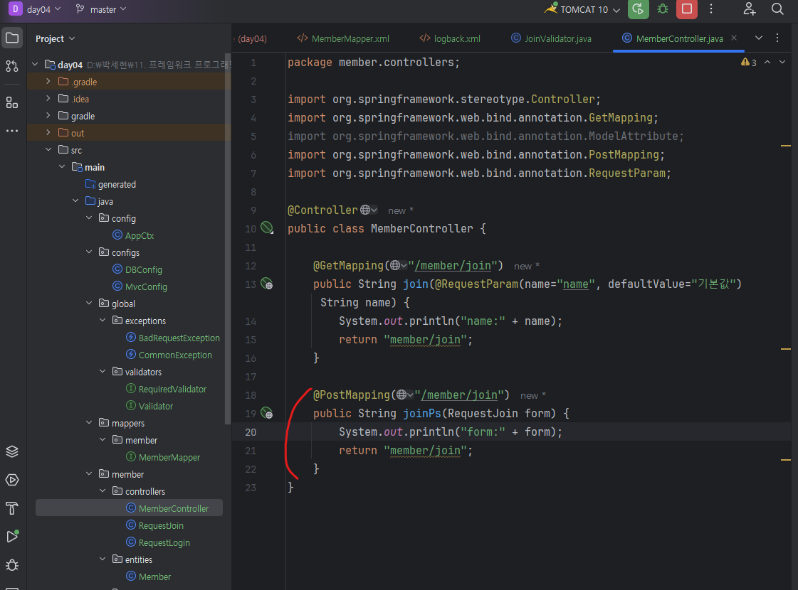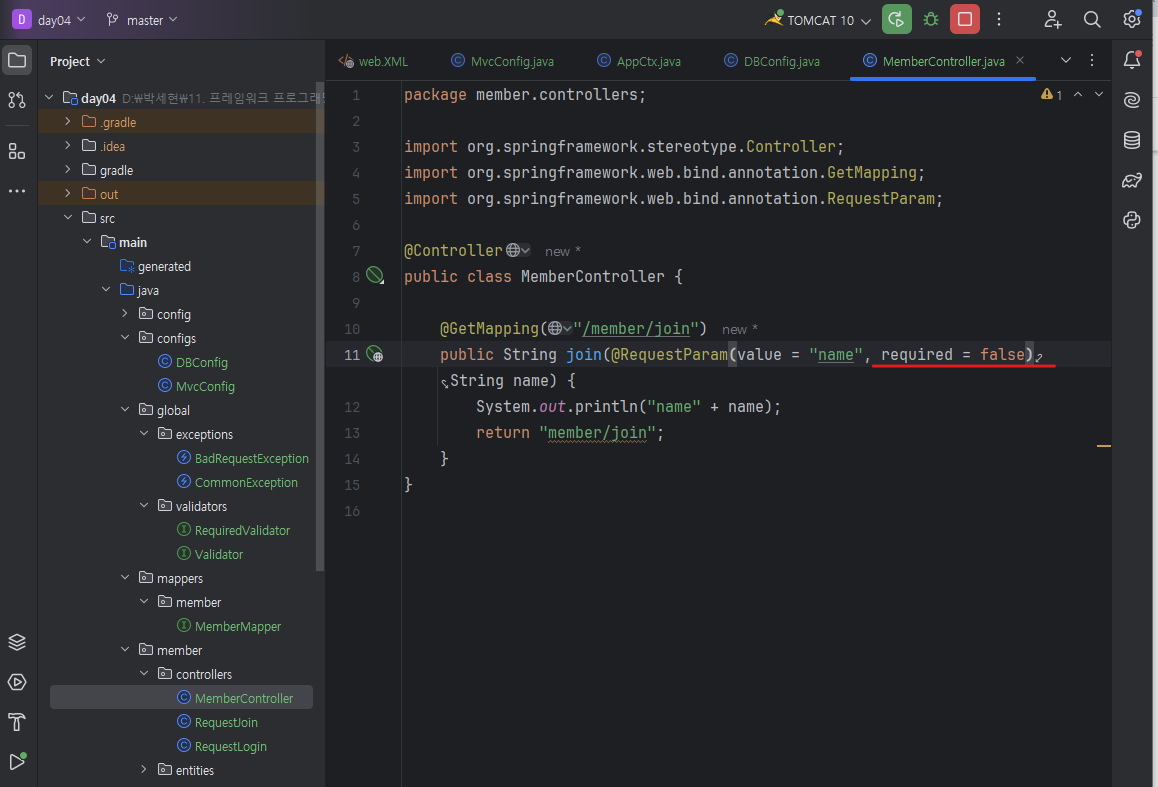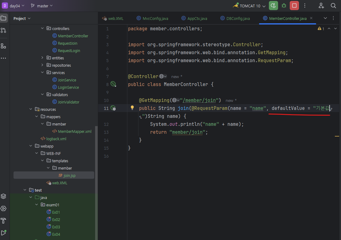 1) 요청 데이터의 이름과 동일한 매개변수를 요청 메서드에 정의하면 자동으로 주입