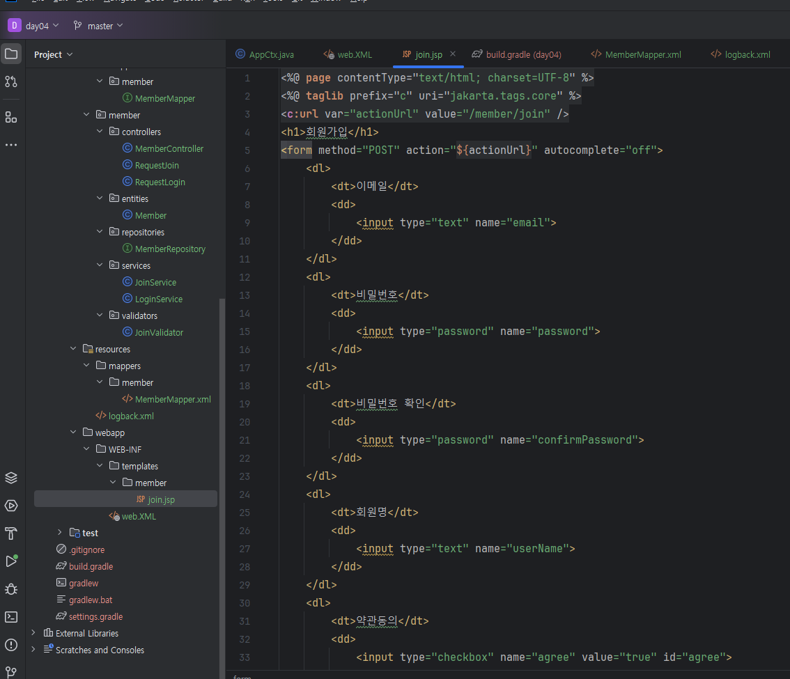 ㄴ templates는 경로를 잘 찾지 못하는 webapp경로에 생성