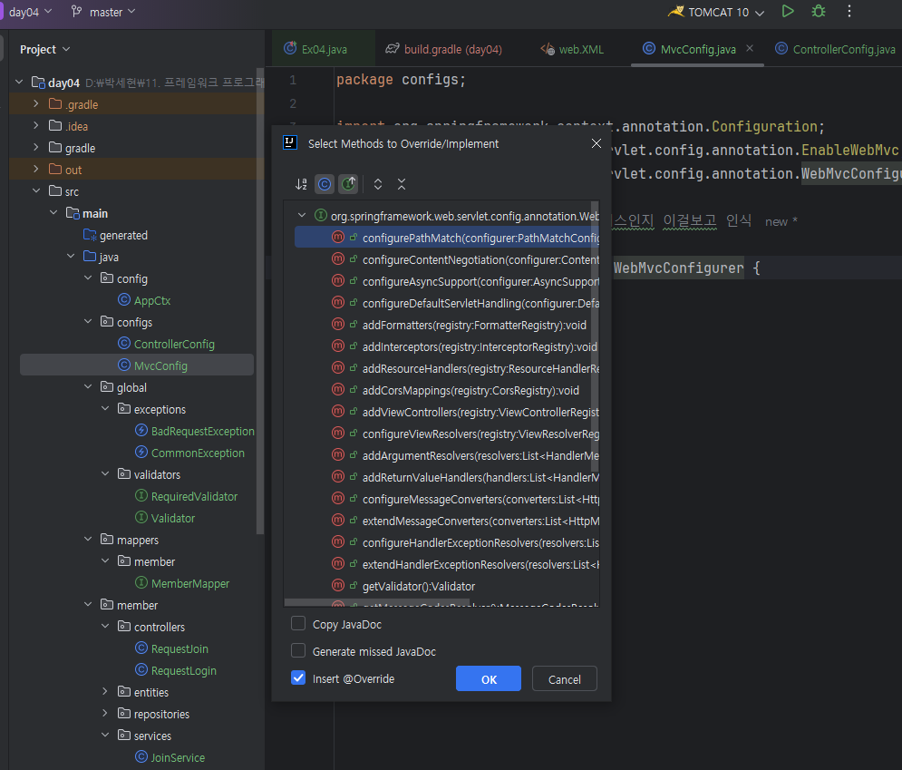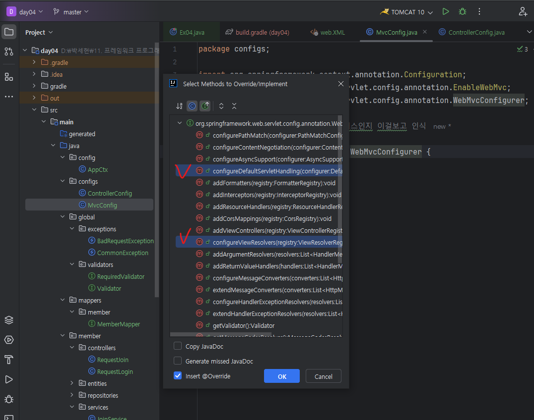 예시) 설정클래스 생성(@EnableWebMvc, implements WebMvcConfigurer)
