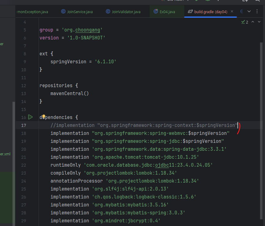 (의존성에 의존성으로 스프링콘텍스트가 여기에 이미 포함되어 있다)