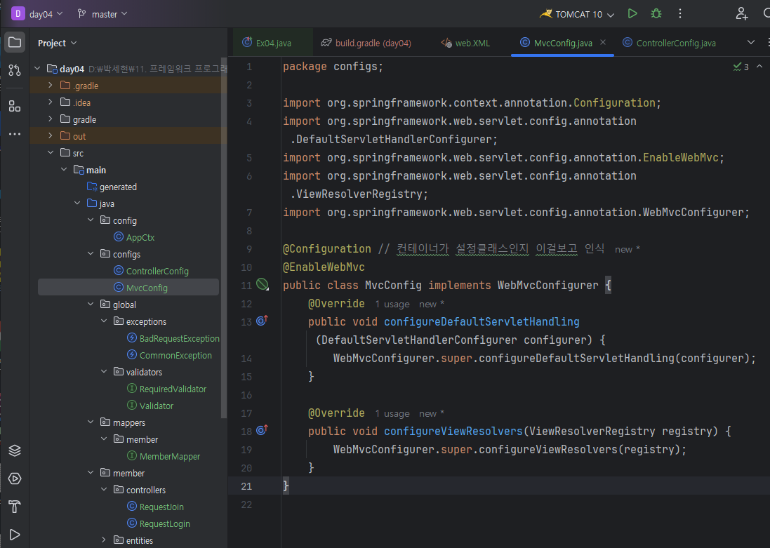 ㄴ configs.MvcConfig , configs.ControllerConfig : 설정 클래스