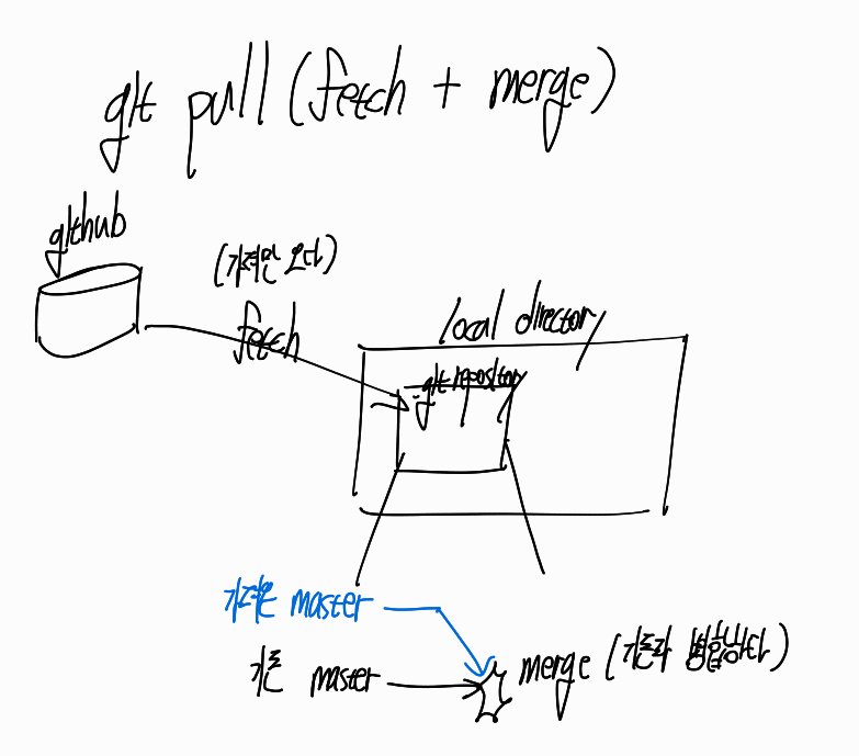 원격 저장소의 브랜치에 저장되있는 snapshot을 현재 로컬 브랜치에 가져옵니다.