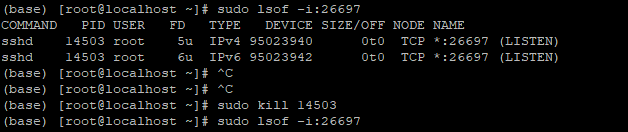 sshd만 점유하고 있기때문에 해당 프로세스를 죽여준다.