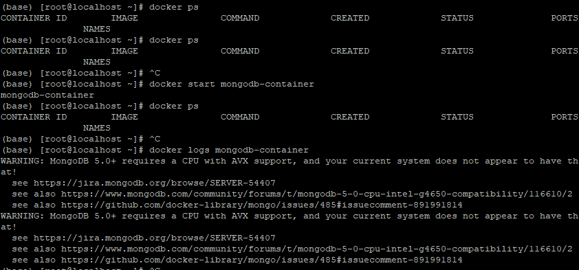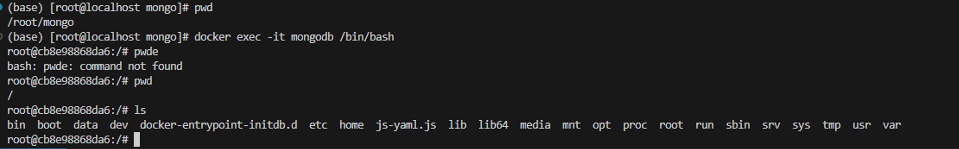 (base) [root@localhost ~]# docker run --name mongodb-container -v /root/data:/data/db -d -p 26697:27017 mongo