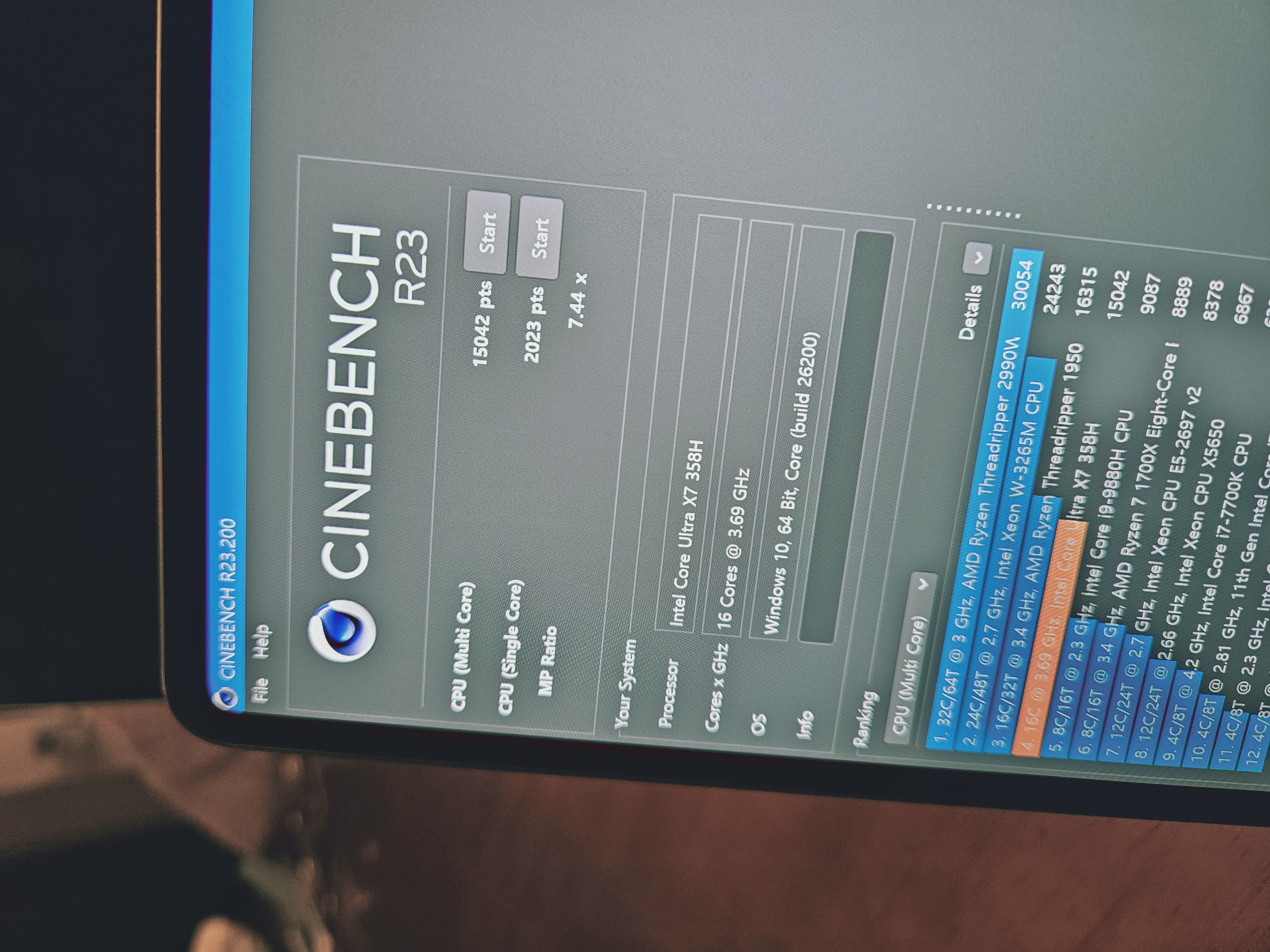 갤럭시북 6 프로 16은 유튜브에서 멀티 약 17,000점 정도 나오는 것 같아서 약 2천 정도 차이로 12% 차이가 난다. 삼성이 14인치 폼팩터로 꽤나 잘해낸 것 같다. 14인치는 베이퍼챔버도 안넣어주고 히트파이프만으로 쿨링팬을 새로 만들어 이 성능을 해냈다. 또한 배터리로도 성능저하가 거의 없어서 미소가 지어진다.