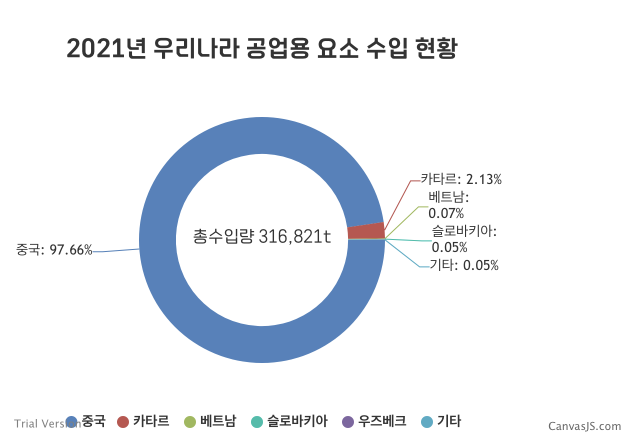 text: "2021년 우리나라 공업용 요소 수입 현황",