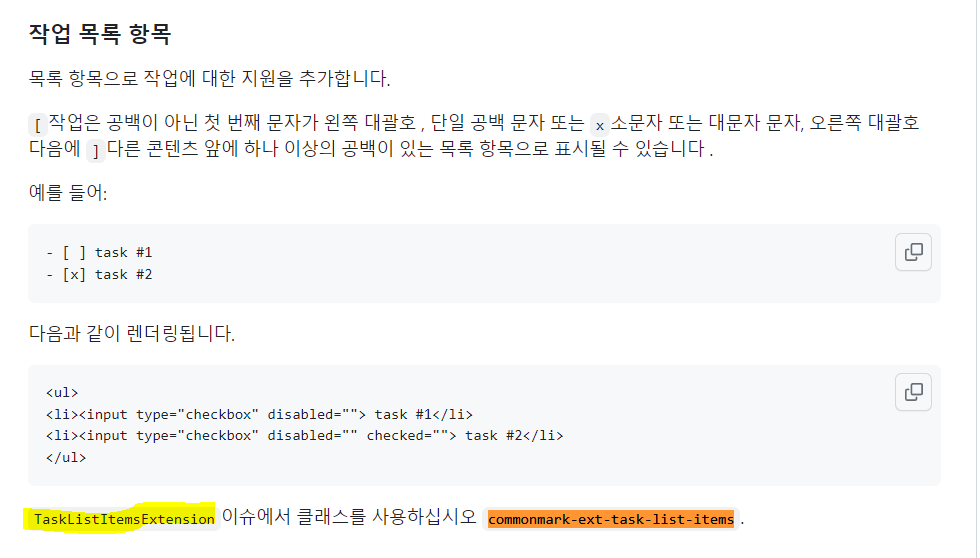 implementation 'com.atlassian.commonmark:commonmark-ext-task-list-items:0.15.0' // task 관련 추가 설정