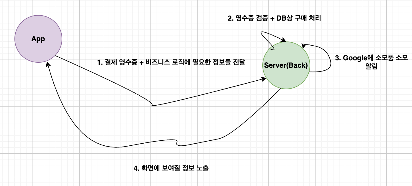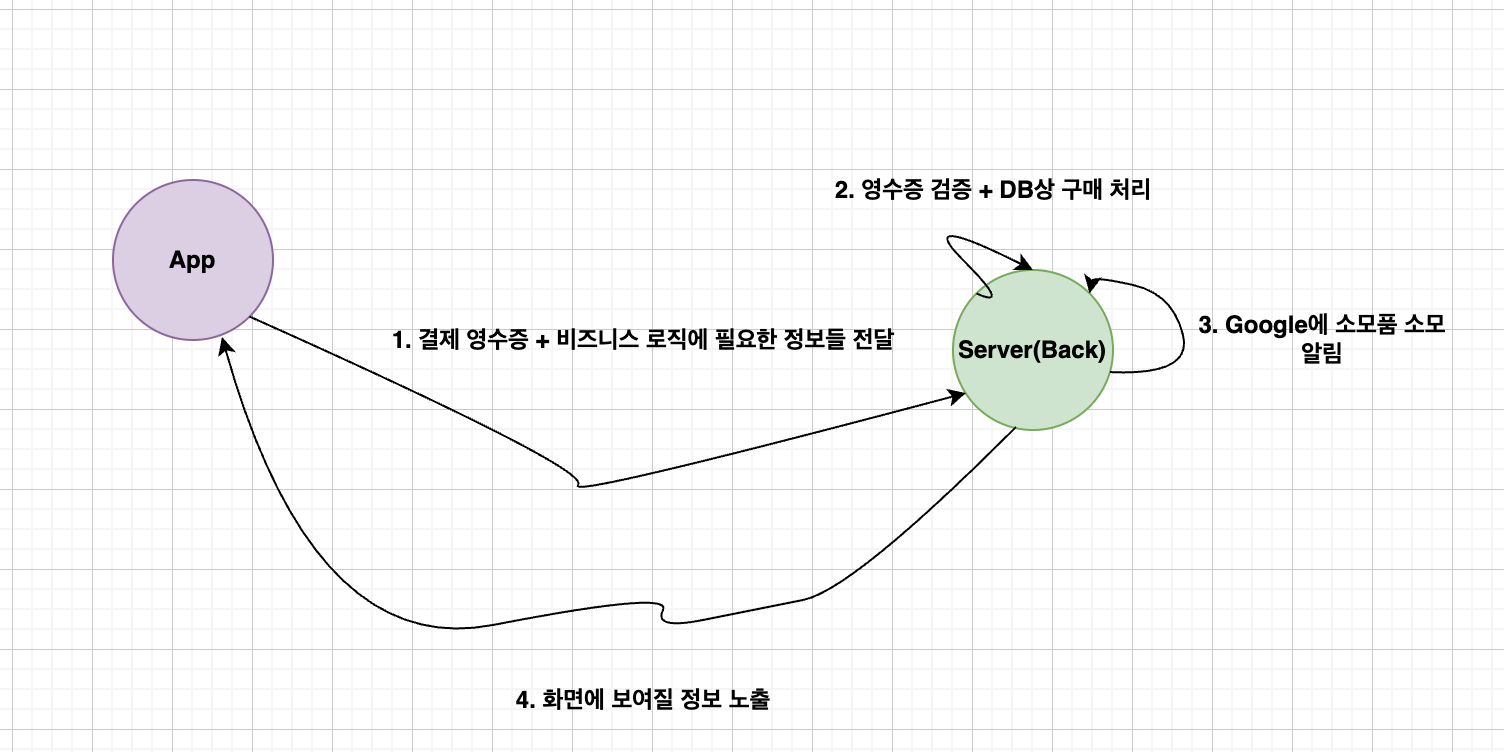 | consumptionState | 인앱 상품의 소비 상태/ 0: 아직 소비되지 않음, 1: 소비함 | 소비되지 않은 경우의 구매 토큰인 경우 백엔드에서 소비 처리용 |