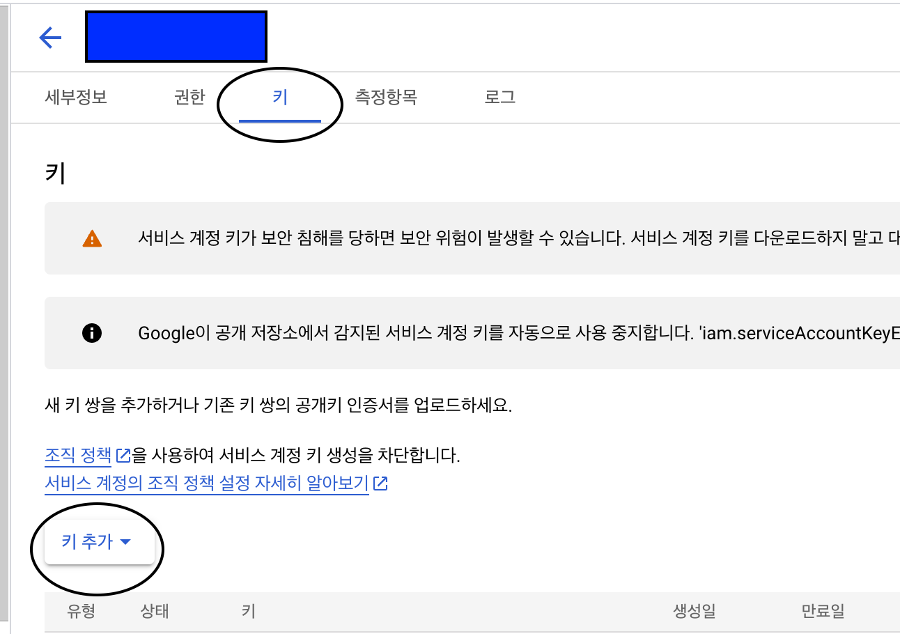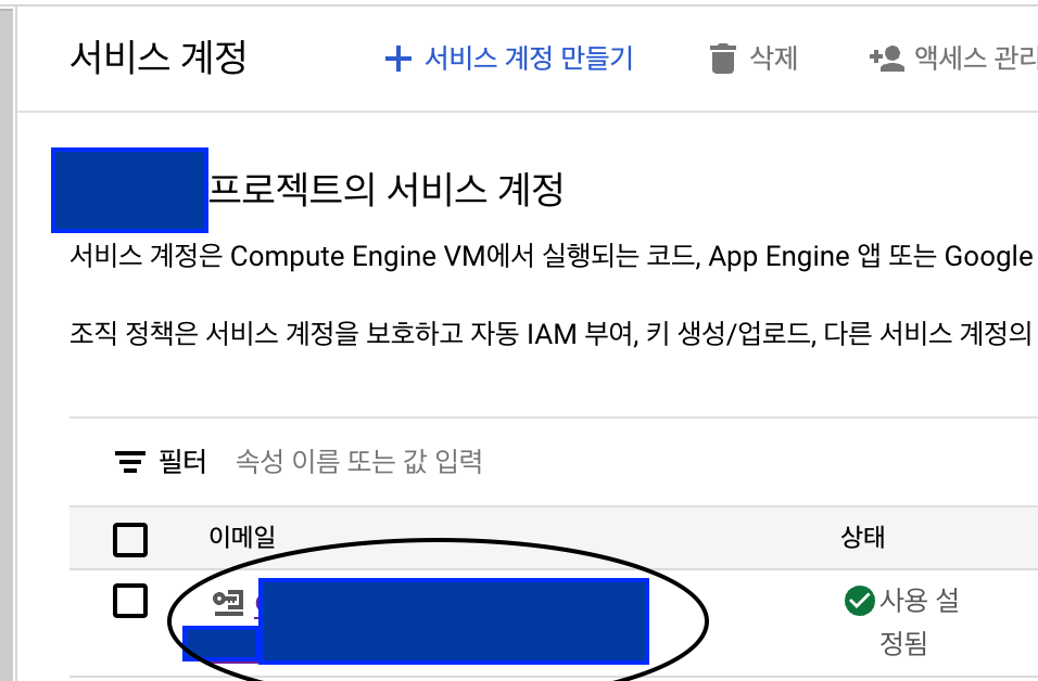 API 사용 권한이 없는 사람에게 서비스 계정의 사용자 인증 정보가 공개되지 않도록 안전하게 관리 필수