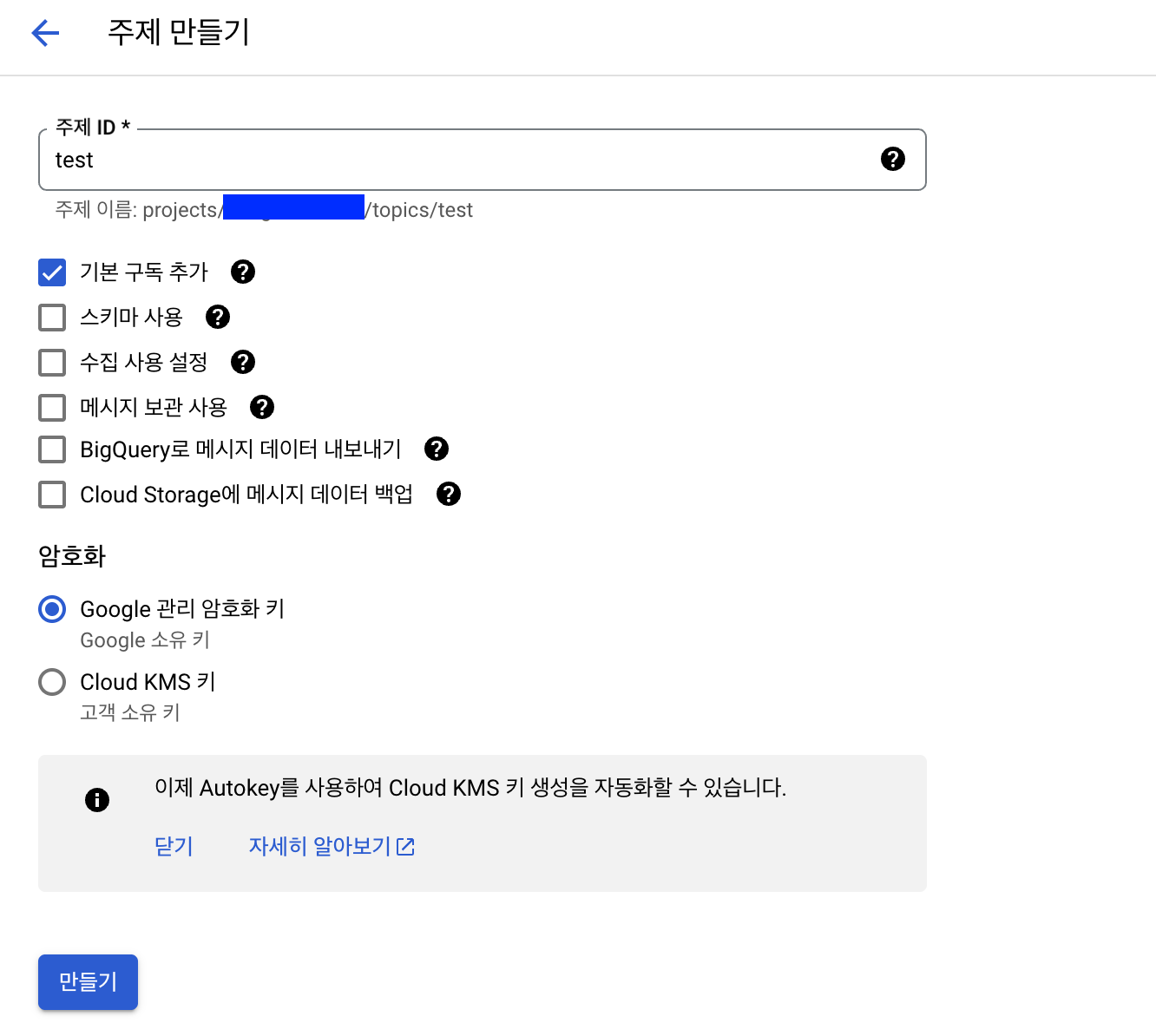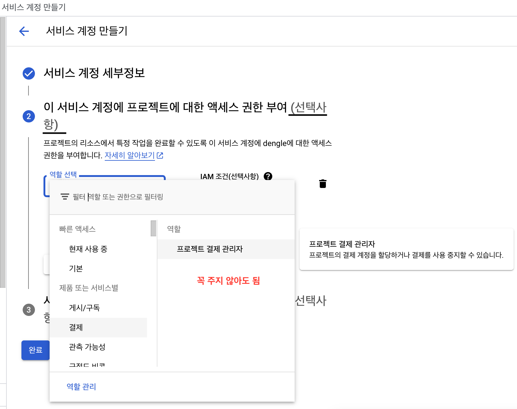 Play Console 시작하기 링크에서 바로 설정할 수 있는 링크로 이동할 수 있어 생략합니다.)Google Cloud 프로젝트 만들기