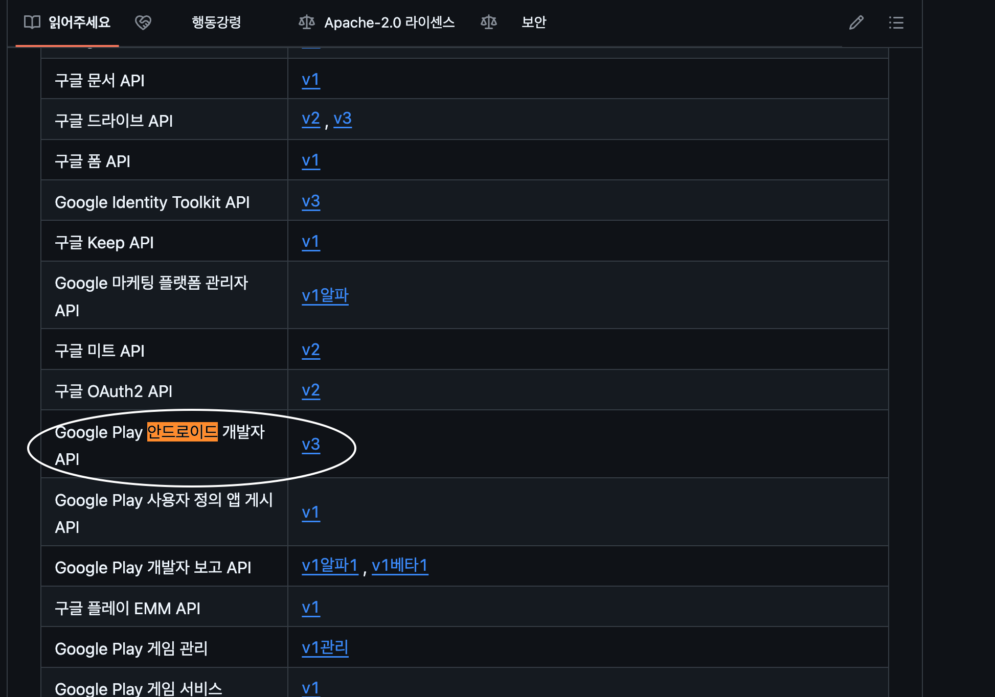 sqladmin.instances().list("exciting-example-123").execute();GoogleCredential 객체를 사용하여 호출하려는 API의 서비스 객체인 AndroidPublisher를 생성합니다. implementation 'com.google.apis:google-api-services-androidpublisher:v3-rev20250102-2.0.0' // `GoogleCredential` 객체를 사용하여 호출하려는 API의 서비스 객체 AndroidPublisher 생성용