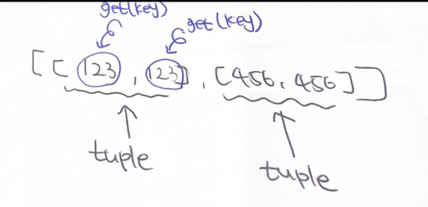 - Tuple 안에서 각각은 Map과 유사한 형태