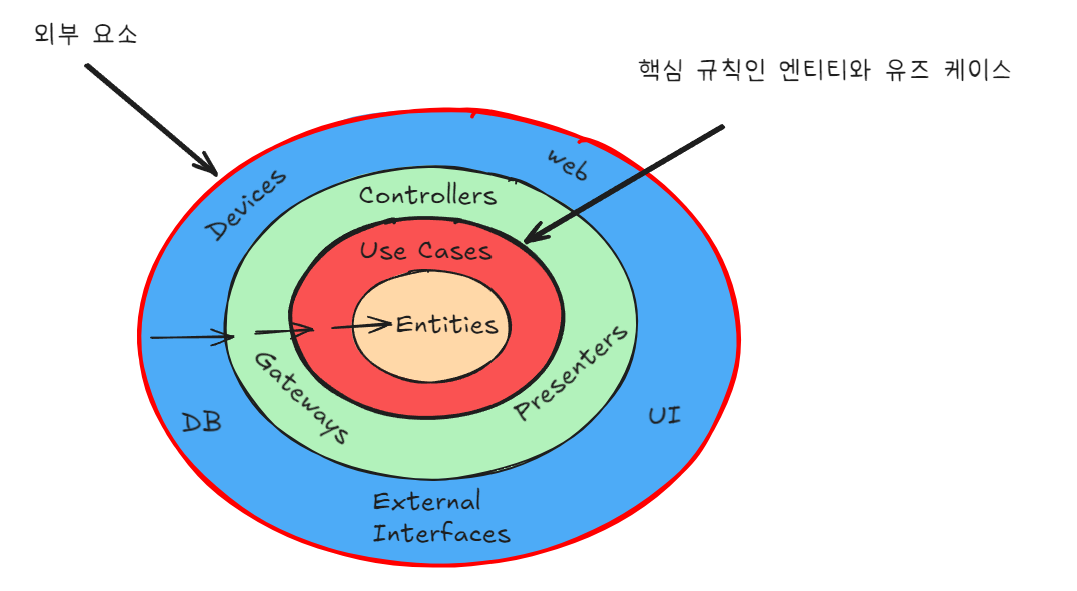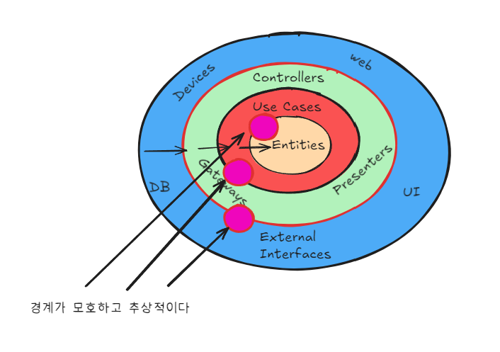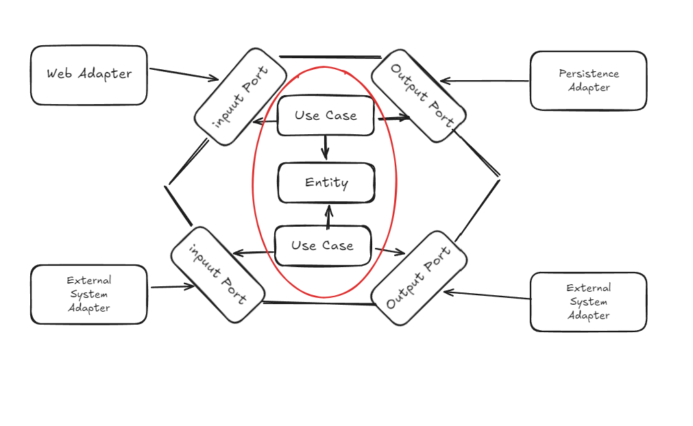 - 외부 요소인 UI, DB, API 같은 것에 도메인이 의존하지 않도록 도메인 보호