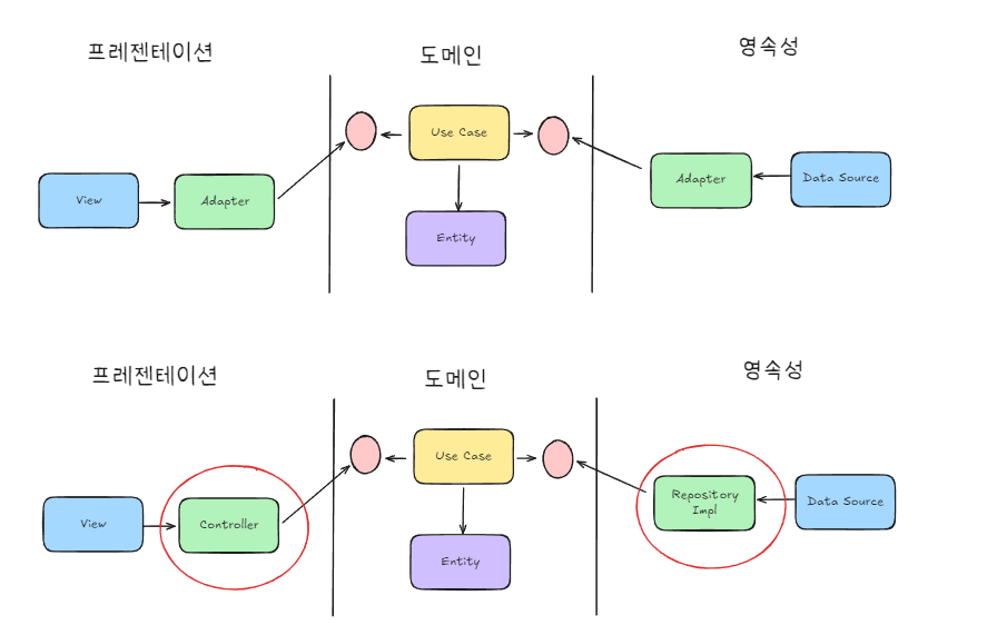 - POJO로 이루어진 Entity와 Use Case는 클린 아키텍처의 Entity와 Use Case와 유사