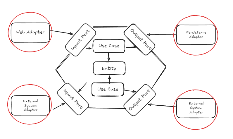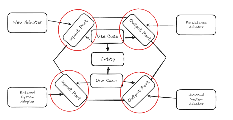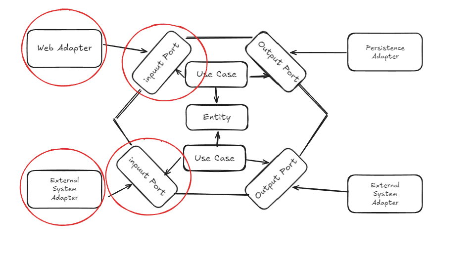 - 포트를 구현하기도 하며 포트를 통해 Use case를 직접 호출하기도 합니다.