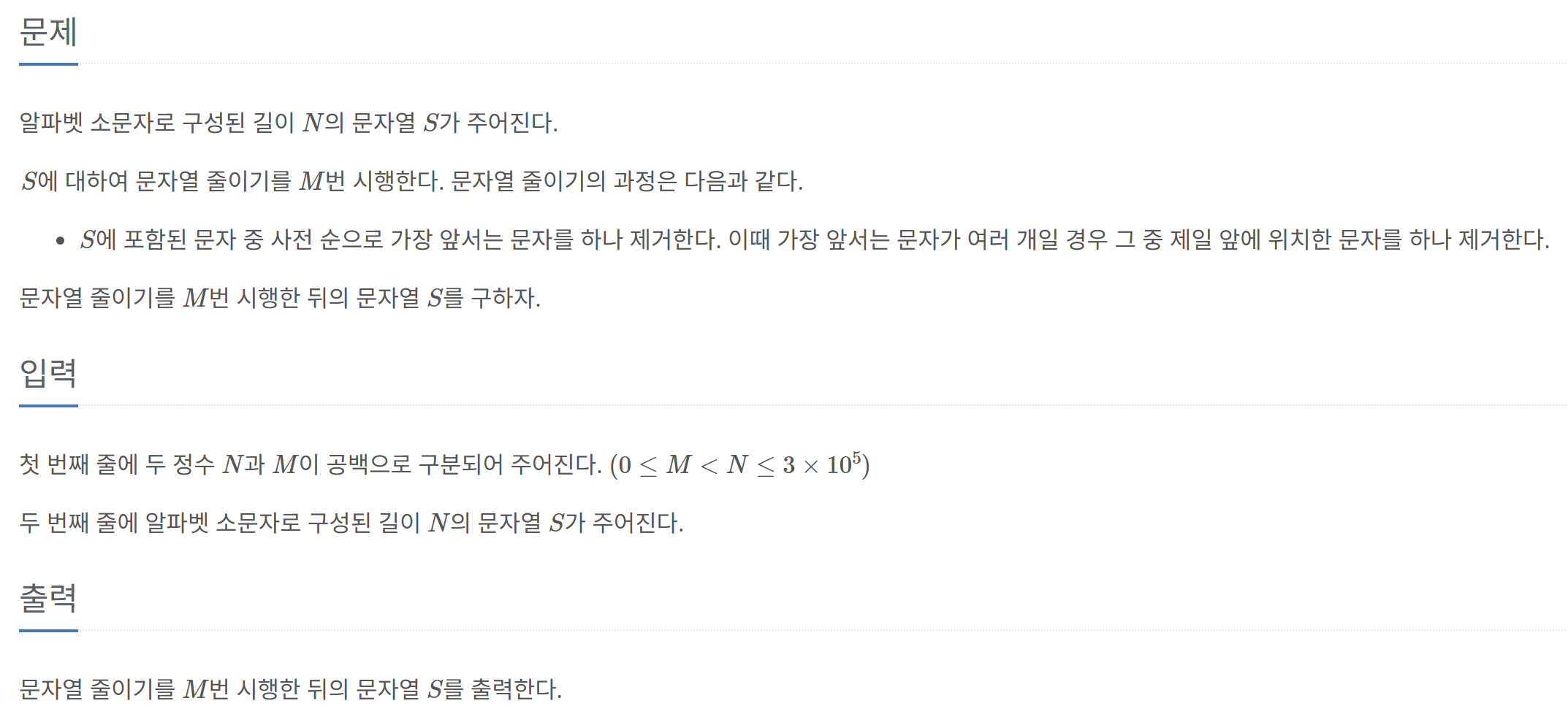 이를 활용하면 각 알파벳의 개수를 구할 수 있고 가장 앞서는 문자를 몇 개 지워야 할지도 계산할 수 있다.