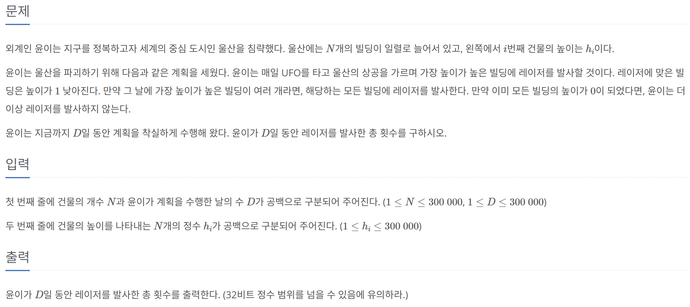 가장 높은 빌딩의 최종 높이는 D번만큼 레이저를 맞은 높이일 것입니다.