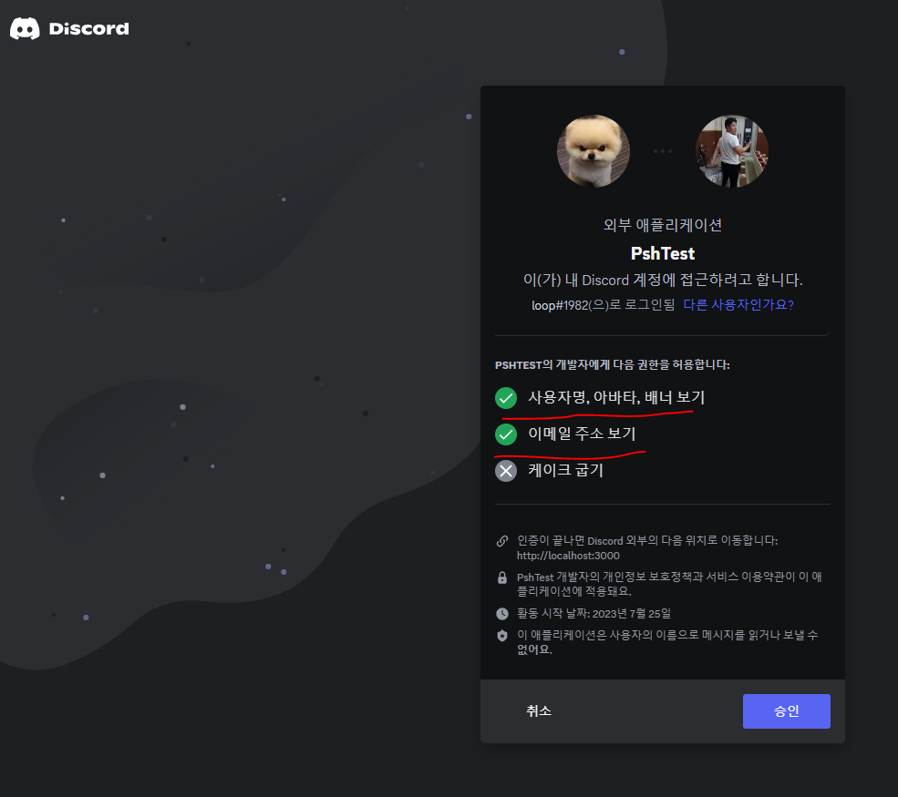 - 사용자는 디스코드 인증 페이지로 리다이렉트됩니다.