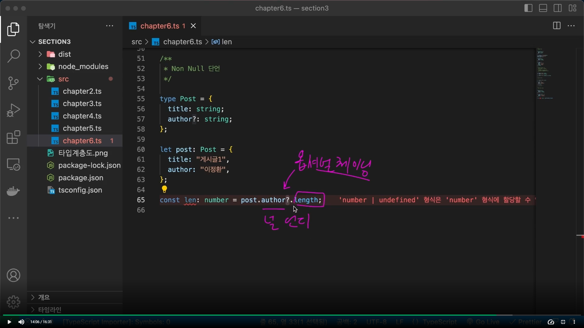 const len: number = post.author?.length; // 이럴경우 number타입에 undefined가 들어갈수있어 오류가 나옵니다