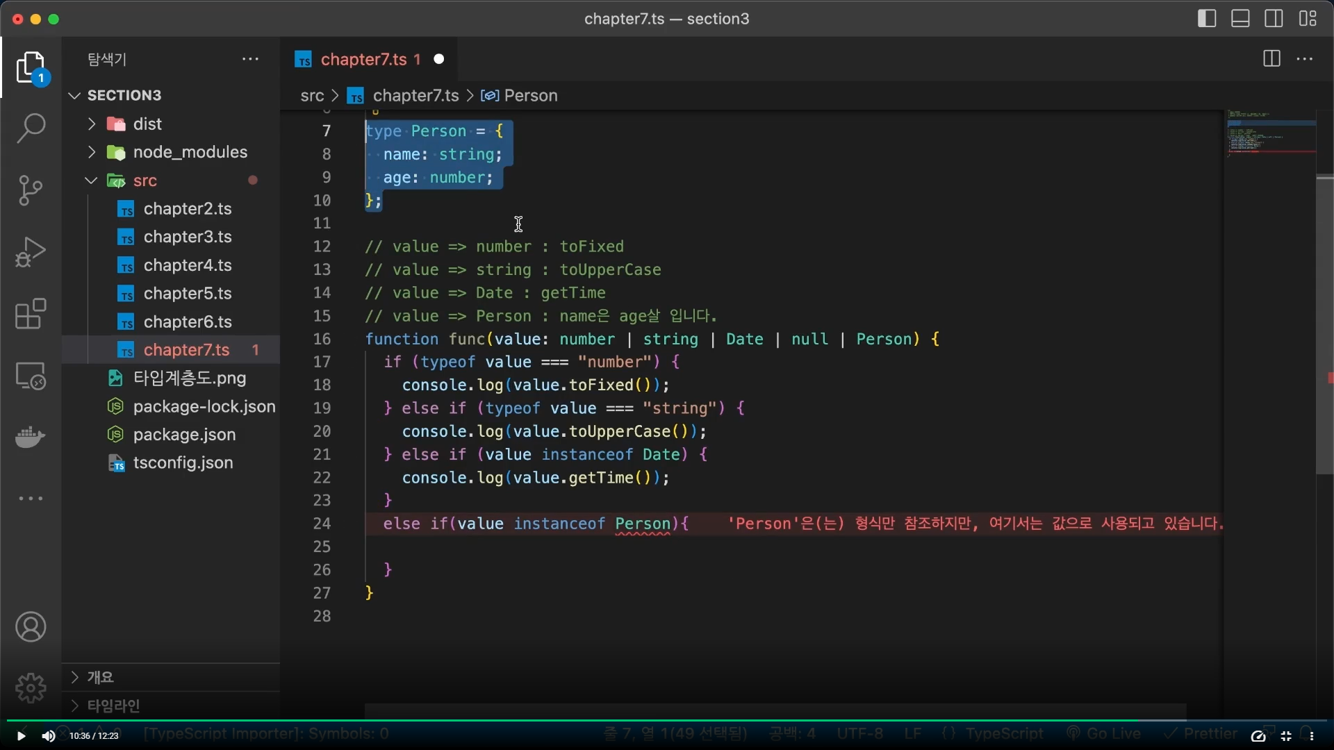 // } else if (value instanceof Person) { typeof Person 을 사용할 경우 오류가 출력됩니다