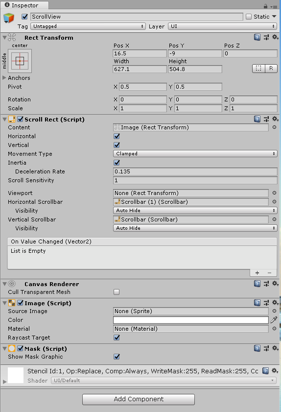Mask를 적용하기 위해서는 Scroll Rect의 자식으로 Image를 가지고 있어야 한다.