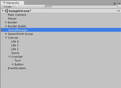1 2 3 4 5 6 7 8 9 10 11 12 13 14 15 16 17 18 19 20 21 22 23 24 25 26 27 | private void OnTriggerEnter2D(Collider2D collision) { if(collision.gameObject.tag == "Border") { code } else if(collision.gameObject.tag == "EnemyBullet" || collision.gameObject.tag == "Enemy") { life--; GameManager manager = gameManager.GetComponent<GameManager>(); manager.UpdateLife(life); gameObject.SetActive(false); Destroy(collision.gameObject); if (life == 0) { manager.GameOver(); } else { manager.PlayerActiveOff(); } } } | cs |