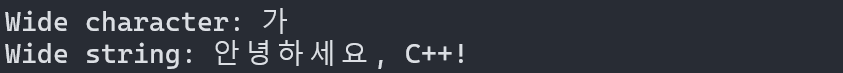 wstring wide_str = L"안녕하세요, C++!";
