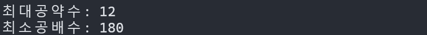 cout << "최소공배수: " << lcm(36, 60); // 12 * 3 * 5 = 180