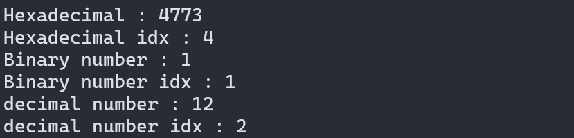 cout << "decimal number idx : " << idx << endl;