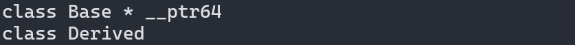 - typeid(*b) : 객체에 대한 참조이므로, 이 때는 RTTI를 사용해서 실제 객체의 타입, 즉 Derived를 반환