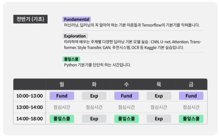 이런 시간표에 따라 학습하고 공부하게 된다.