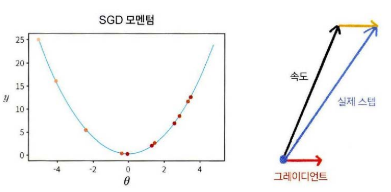 SGD 모멘텀은 오버 슈팅이 되는 단점이 있다.