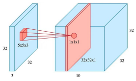 32x32x3 이미지에 5x5x3 Filter를 적용한다고 했을 때 한 번의 연산에 5x5x3영역만큼 연산한다. Sliding Window로 이미지 전체를 연하면 32x32x1 크기의 feature map을 얻고 더 깊은 feature map을 얻기위해선 더 많은 convolution filter를 사용해야한다.