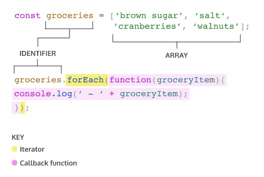 위의 세 개의 코드는 모두 동일한 작업을 수행합니다. 세가지 예시 중 하나를 선택하여 콜백함수를 반복자에 대한 인수로 제공할 수 있습니다.