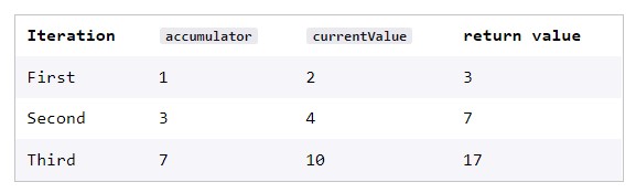 .reduce()를 통해 진행이 되는 동안의 accumulator와 currentValue의 값을 보도록 하자.