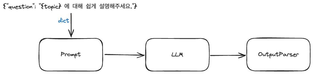 위와 같이 프롬프트 + LLM 모델 + 파서를 결합하는 하나의 체인을 구성할 수 있음