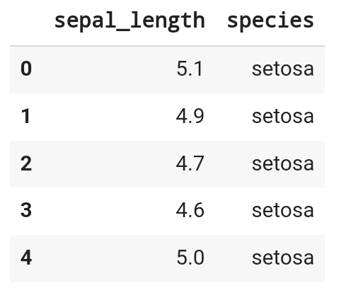 df_iris[['sepal_length', 'species']].head()