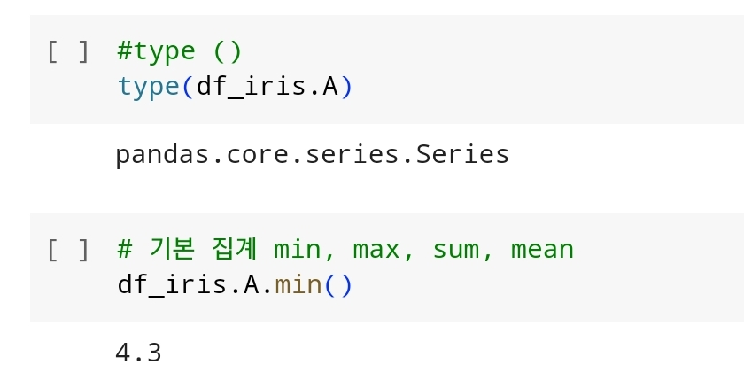 # df_iris.sepal_legngh 와 같이 . 으로 가지고 오는 경우에는 컬럼 사이 띄어쓰기가 있는 경우 쓸 수가 없다