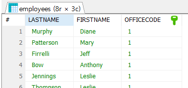SELECT LASTNAME, FIRSTNAME, OFFICECODE