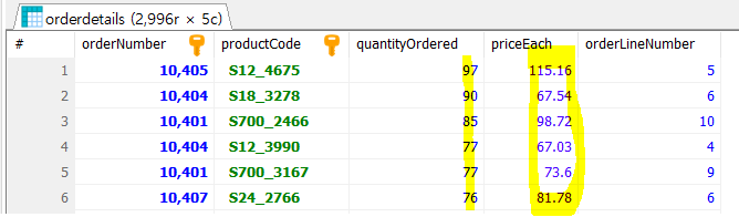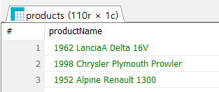 ❔ 문제 3: products 테이블에서 제품이름(productName)을 조회하되, 가격(buyPrice)을 기준으로 내림차순으로 정렬하라.