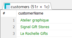 ❔ 문제 1: customers 테이블에서 국가(country)가 'USA', 'Canada', 'France' 중 하나인 고객의 customerName을 조회하라.