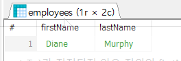 ❔ 문제 2: employees 테이블에서 상사(reportsTo)가 지정되지 않은 직원의 firstName과 lastName을 조회하라.
